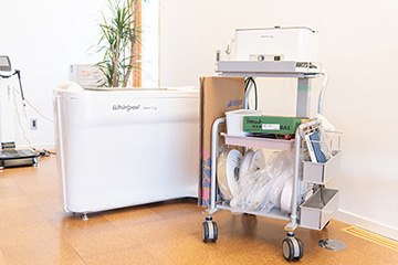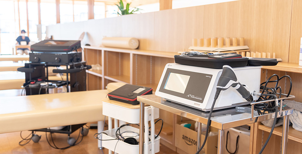 当クリニックでは今回、圧力波、ラジオ波、3Dシフト干渉波、超音波、ハイボルテージ、過流浴、ホットパックといった物理療法機器、バイク、ストレッチマシンといった運動療法機器、スプリントの機材一式を導入しました。酒井医療さんが扱う機器はどれもデザイン性に優れていて、当クリニックが目指す、患者さんをリラックスさせる環境づくりにも一役買ってくれています。
