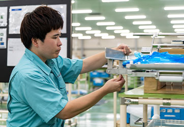 製品を安定した品質で、効率よく生産する方法や手順を決めたり、それらの工程で使う設備や工具、治具を選定したり製作したりします。工場内の各部門と協働で、より良いモノづくりの環境を追求します。
