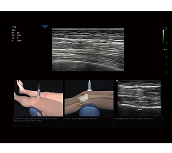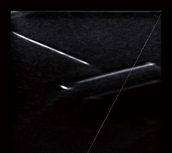 神経ブロックなどのインターベンション施行時、針の位置を明瞭化する機能です。