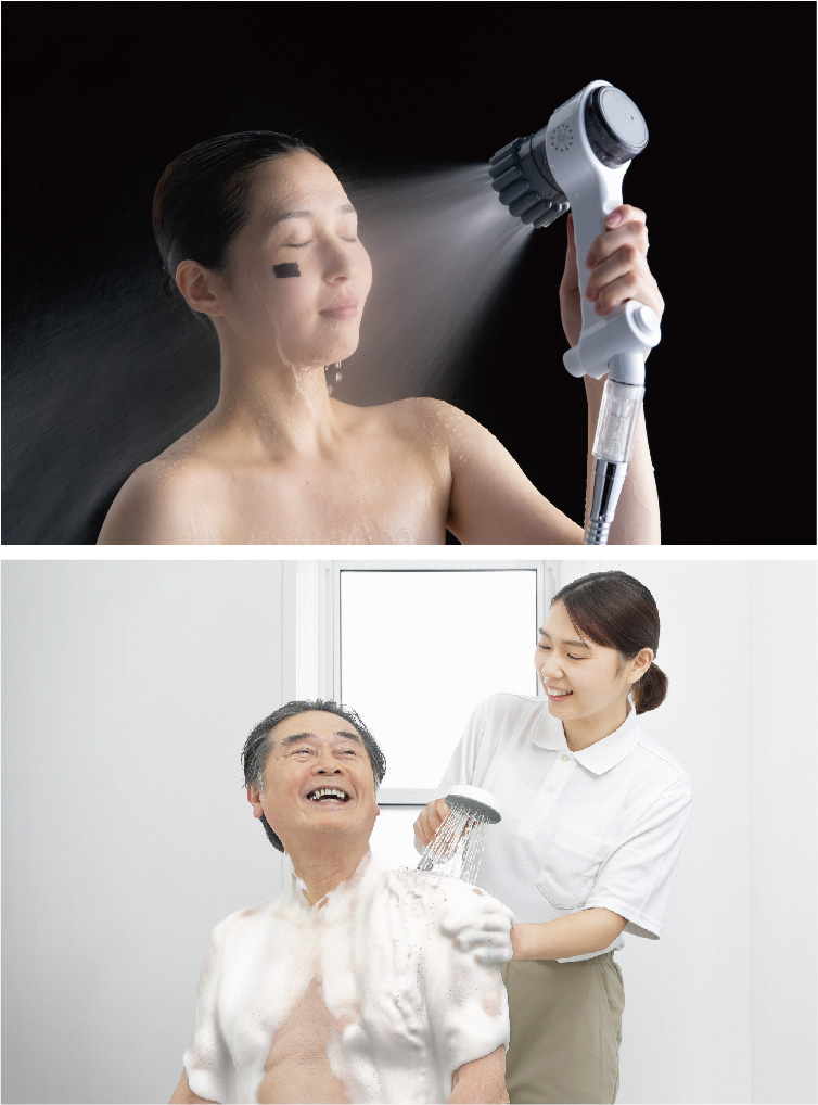ミストシャワーと洗髪機能でもっとここちよく。これまでにない入浴ケアを全ての方へ。